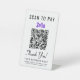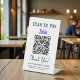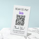 Simple panneau de piédestal de table moderne pour votre entreprise avec un code Zelle QR pour les clients à scanner pour les paiements. Ajoutez votre code QR, votre nom d'entreprise, votre numéro de téléphone et votre adresse de rue dans une simple typographie.