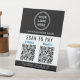 Simple en noir et blanc, panneau de piédestal de table moderne pour votre entreprise avec les codes QR Venmo et Paypal pour les clients à scanner pour les paiements. Ajoutez votre logo, vos codes QR, votre nom d'entreprise, votre numéro de téléphone, votre adresse municipale ou toute autre information en simple typographie.