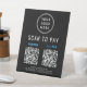 Simple moderne table noire panneau de piédestal supérieur pour votre entreprise avec Venmo et Paypal codes QR pour les clients à scanner pour les paiements. Ajoutez votre logo, vos codes QR, votre nom d'entreprise, votre numéro de téléphone et votre adresse de rue ou tout autre texte dans une simple typographie blanche. La typographie et les couleurs arrière - plans peuvent être modifiées en sélectionnant pour modifier dans l'outil de conception ou en nous contactant à l'adresse juliehortondesigns@gmail.com pour obtenir de l'aide.