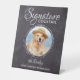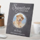 Signature Boissons de vos animaux de compagnie! Inclure votre meilleur chien, meilleur chat et tout animal de compagnie dans votre mariage avec son bar à boissons signature pour vos invités. Parfait pour les amoureux de les chiens, et un bar spécial chien sera un succès à votre mariage. Simples ardoise rustique blanc avec feuilles eucalyptus. Customisez ce signe mariage animal de compagnie avec votre chien, chat, chiot ou chaton photo préférée, nom et signature boisson!. DROIT D'AUTEUR © 2020 Judy Burrows, Black Dog Art - Tous droits réservés. Animaux de compagnie Mariage Dog Bar Cocktail Signature Boissons Signal de piédestal