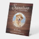 Signature Boissons de vos animaux de compagnie! Inclure votre meilleur chien, meilleur chat et tout animal de compagnie dans votre mariage avec son bar à boissons signature pour vos invités. Parfait pour les amoureux de les chiens, et un bar spécial chien sera un succès à votre mariage. Bois rustique simple blanc avec feuilles eucalyptus. Customisez ce signe mariage animal de compagnie avec votre chien, chat, chiot ou chaton photo préférée, nom et signature boisson!. DROIT D'AUTEUR © 2020 Judy Burrows, Black Dog Art - Tous droits réservés. Pet Mariage Signature Boissons Barre de Chien Cocktail Pédale Signal