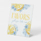 Fête Favor S'Il Vous Plaît Prendre Un Signe Du Piédestal. Doté de citrons aquarelle, d'élégantes fleurs bleu ardoise poussiéreuses et d'une coupe de champagne aquarelle. Idéal pour toute douche, mariage ou baby shower principal pressé !