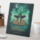 Add a charming and mystical touch to your home or commercial space with our exclusive pedestal sign Attractive & Mystical Halloween Witch Conjures Enchanting Spells Amid Glowing Candles And Vibrant Pumpkins Under A Moonlit Teal Sky. This unique and festive design is perfect for decorating both residential and commercial settings during the Halloween season.