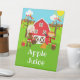 Ce panneau mignon et amusant présente une fille aux cheveux blonds avec un panier de pommes et un épouvantail et corbeau. Dans l'arrière - plan est une grange rouge vif, une clôture marron piquetée, arbres, soleil, citrouilles et paniers de maïs et de pommes. Le texte combine des polices audacieuses et sans serif pour un look élégant et moderne. C'est parfait pour une fête d'automne sur le thème de l'anniversaire. Graphiques de MUJKA