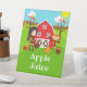 Ce panneau mignon et amusant présente une fille aux cheveux noirs avec un panier de pommes et un épouvantail et corbeau. Dans l'arrière - plan est une grange rouge vif, une clôture marron piquetée, arbres, soleil, citrouilles et paniers de maïs et de pommes. Le texte combine des polices audacieuses et sans serif pour un look élégant et moderne. C'est parfait pour une fête d'automne sur le thème de l'anniversaire. Graphiques de MUJKA