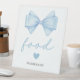 Ce guéridon alimentaire est parfait pour votre baby shower simple et moderne ou saupoudrer bébé. Dispose d'un arc de coquette bleu aquarelle. Vous pouvez personnaliser cette conception en cliquant sur "Personnaliser ce modèle" ou si vous souhaitez modifier la police, les couleurs ou organiser les éléments de conception d'une manière différente, vous pouvez cliquer sur "Modifier à l'aide de l'outil de conception".