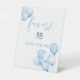 Thème de ballon pastel bleu aquarelle, avec de minuscules chaussures douces au centre sur un arrière - plan blanc. Décorez votre place pour des cadeaux de faveur aux invités à votre baby shower avec ce panneau.