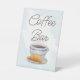 Café et croissants toute la saison Baby Shower avec un fond en détresse bleu clair et blanc