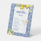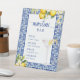 Cette invitation à la douche de mariée présente un thème bleu vif avec des agrumes.
