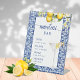 Cette invitation à la fête de mariage présente un thème bleu vif avec des agrumes.