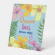 Tropical, aquarelle fleurie, été, Luau Dessert Bar panneau de piédestal, avec des fleurs colorées d'aquarelle, des palmiers et flamands roses. Choix parfait pour la décoration de fête d'été.