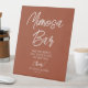 Mimosa Bar Cheers Modern manuscrit Script Cuivre Mariage Événement Tabletop Signs présente le texte "Mimosa Bar" dans élégante typographie de script de calligraphie blanche moderne. Parfait pour les mariages, la douche nuptiale, la fête d'anniversaire, les célébrations d'anniversaire et plus encore. Conçu par Evco Studio www.zazzle.com/store/evcostudio