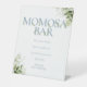 Avec de jolies lettres bleues poussiéreuses et fleurs vertes, cet élégant panneau de bar momosa pour baby shower peut être personnalisé avec vos détails spéciaux de baby shower. Conçu par Thisisnotme©