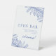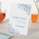 Indicateur de Pedestal Bleu Simple Botanique Open Bar Ce panneau de piédestal bleu royal ajoute une touche de tranquillité vintage à tout événement ou espace. Doté d'un design botanique simple, il allie harmonieusement style et fonctionnalité, ce qui en fait l'endroit idéal pour les mariages, les fêtes ou les milieux d'affaires. Le socle robuste assure la stabilité, tandis que les couleurs et le design accrocheurs attirent l'attention sans envahir l'environnement. Idéal pour guider les clients ou pour afficher des informations importantes, ce panneau est à la fois pratique et esthétique.