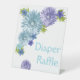 Ce joli panneau de piédestal bleu fleuri Baby In Bloom serait l'ajout parfait à votre célébration. Mettez-le sur une table pour que les invités puissent mettre les couches qu'ils ont apportées pour le tirage de couches pour bébés. Caractéristiques de la marguerite bleue gerbera et des fleurs d'hydrangée fleurissent avec des fougères vertes sur un arrière - plan blanc. Customisez par la modification pour modifier le libellé si vous voulez dans la liste. Voir les autres articles de coordination dans ma boutique en regardant le baby shower bleu brunch bébé dans la collection de fleurs ou la recherche de brunch baby shower dans ma boutique.
