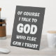 Bien sûr, je Parle à Dieu, cette conception chrétienne comporte un texte en noir et blanc disant "Bien sûr, je Parle à Dieu, qui d'autre peut-je faire confiance".