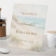 Accueillez vos invités avec ce panneau de mariage romantique sur le thème de la côte. Il présente un doux paysage de plage à l'aquarelle avec des dunes de sable, des fléoles des sables et des vagues turquoises ondulantes. Placez ce panneau sur piédestal à l'entrée ou sur la table du livre d'or pour améliorer votre célébration tropicale au bord de la mer.