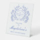 Un élégant blason floral bleu vintage français prend le devant de la scène sur ce panneau de bienvenue d'anniversaire intemporel. Orné, formel et très féminin fera sentir très spéciale toute dame d'anniversaire. Des fournitures de fête coordonnées sont disponibles.
