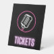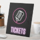 Le texte "Billets" violet néon avec silhouette micro style rétro néon sur arrière - plan noir en fait un excellent design pour une variété d'événements allant des événements de musique live aux concours de chant