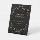 Voici un joli panneau d'information commerciale qui peut être facilement adapté à n'importe quel usage. Il présente une demi-couronne dorée brillante de feuilles sur une vigne sur un arrière - plan noir dramatique. Le texte en or est inclus dans le cadre. Il y a deux champs de texte pour vos informations, et vous pouvez facilement le changer à tout ce que vous voulez. Si vous devez redimensionner du texte ou modifier des polices, utilisez Modifier. Classique et utile !