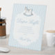 Améliorez votre douche pour bébé avec notre enseigne de tombola française adorable. Doté d'un élégant cheval en bois à bascule vintage et d'un script sophistiqué de calligraphie bleu bébé, ce panneau ajoute une touche de style à votre célébration. Ne manquez pas cette somptueuse addition au décor de votre événement !