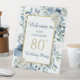 Signe De Table Blue Floral 80e anniversaire fête Bienvenue