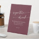 Ce signe de boisson boho chic et rouge mariage est parfait pour un mariage minimaliste. Le vin de marron foncé rouge design bohème moderne dispose de calligraphie rustique simple avec un style unique mais classique. Personnalisez votre panneau de bar mariage avec le cocktail de spécialités qui sera servi.