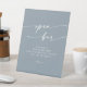 Cette enseigne de mariage de bar ouvert, bleu et chic boho, est parfaite pour un mariage minimaliste. Le design moderne et bohème, bleu clair neutre, présente une calligraphie rustique simple, avec un style unique mais classique. Parfait pour toute saison : printemps, été, automne ou hiver.