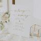 Ce boho chic or et blanc mariage en signe de mémoire aimante est parfait pour un mariage minimaliste. L'or jaune neutre et le design bohème moderne blanc présentent une calligraphie rustique simple avec un style unique mais classique. Personnalisez votre signe commémoratif mariage avec le nom de vos proches disparus.