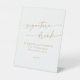 Ce signe de boisson boho chic or et blanc mariage signature est parfait pour un mariage minimaliste. L'or jaune neutre et le design bohème moderne blanc présentent une calligraphie rustique simple avec un style unique mais classique. Personnalisez votre panneau de bar mariage avec le cocktail de spécialités qui sera servi.
