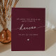 Ce panneau de mémorial mariage rouge bordeaux chic et boho est parfait pour un mariage minimaliste. Le vin de marron foncé rouge design bohème moderne dispose de calligraphie rustique simple avec un style unique mais classique.