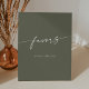 Ce mariage chic et moderne, vert olive, qui privilégie le signe, est parfait pour un mariage minimaliste. La tonalité bohème vert foncé bohème moderne est composée d'une calligraphie rustique simple au style unique mais classique.