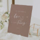 Cette enseigne mariage de bar chic et neutre en bois taupe et taco est parfaite pour un mariage minimaliste. Le ton de terre brun beige design bohème moderne se compose de calligraphie rustique simple avec un style unique mais classique. Ce panneau est parfait pour une réception de mariage, une fête de fiançailles, un dîner de répétition ou une douche nuptiale.