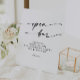 Cette enseigne de mariage de bar ouvert en noir et blanc, chic et boho, est parfaite pour un mariage minimaliste. Le design bohème moderne en noir et blanc présente une calligraphie rustique simple avec un style unique mais classique. Parfait pour toute saison : printemps, été, automne ou hiver.