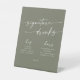 Cette enseigne de boissons chic et verte olives signées mariage est parfaite pour un mariage minimaliste. La tonalité bohème vert foncé bohème moderne est composée d'une calligraphie rustique simple au style unique mais classique. Personnalisez votre panneau de bar mariage avec les cocktails spéciaux sirotés et sirotés qui seront servis.