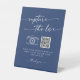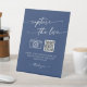 Ce boho chic bleu royal capture le signe mariage d'amour est parfait pour un mariage minimaliste. Le design bohème moderne bleu foncé et audacieux présente une calligraphie rustique simple avec un style unique mais classique. Entrez votre adresse Web dans la section de code QR du modèle et le code QR sera automatiquement mis à jour et lié à votre site.