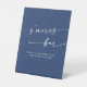 Cette enseigne de mariage boho chic royal bleu smores est parfaite pour un mariage minimaliste. Le design bohème moderne bleu foncé et audacieux présente une calligraphie rustique simple avec un style unique mais classique.