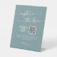 Ce bateau de mer chic et boho turquoise capte le signe du mariage d'amour est parfait pour un mariage minimaliste. Le design bohème moderne et coloré bleu vert présente une calligraphie rustique simple, avec un style unique mais classique qui rappelle la plage, l'océan et le bord de mer d'été. Entrez votre adresse Web dans la section de code QR du modèle et le code QR sera automatiquement mis à jour et lié à votre site.