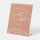 This boho chic terracotta wildflower wedding guest book sign is perfect for a minimalist wedding. The design features soft wildflowers and earthy clay tones to create a relaxed, romantic atmosphere that feels both curated and effortless. Place it on a pedestal beside your guest book to gently guide loved ones to leave their words, wishes, and little pieces of themselves.