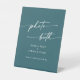Cette enseigne de cabine photo chic et turquoise en mariage bleu est parfaite pour un mariage minimaliste. La tonalité audacieuse turquoise de bijou moderne design bohème dispose de calligraphie rustique simple avec un style unique mais classique. Personnalisez votre logo photo avec votre hashtag pour les médias sociaux.