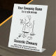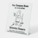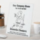 Nettoyage d'un panneau commercial pour un comptoir de bureau. Affichez vos renseignements commerciaux sur un panneau qui présente une illustration amusante d'un nettoyeur domestique. Conception d'entreprise domestique de nettoyage à personnaliser. Panneau de compteur.