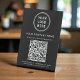 Elevate your countertop, reception desk, or checkout area with this custom QR code black pedestal sign, designed to make connecting with your business fast, simple, and professional. Featuring a clean layout, modern white lettering, and your logo and business name, this tabletop sign blends seamlessly into any retail, salon, clinic, café, office, or service-based environment. With a single scan, customers can instantly view your services, prices, menu, or offerings online. Zazzle automatically generates the QR code from the website address you provide, so there’s no extra setup or technical work required—just enter your URL and Zazzle does the rest. The sturdy pedestal design keeps the sign upright and easy to read, making it ideal for high-traffic counters and front desks. This personalized QR code tabletop sign is a smart, contactless solution for sharing information, increasing website visits, and enhancing customer experience while reinforcing your brand identity in a polished, professional way.