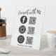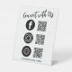 Ce design comprend une tablette d'affaires QR code social media business tabletop sign, un modèle sans contact moderne, simple professionnel noir et blanc, avec un scan moi QR code promotionnel, menu restaurant petite entreprise signalétique, sans contact scan me minimaliste, un scan scannable code QR générer, cafe boutique fournitures d'affaires, paiement électronique scanner le code, scanner pour payer modèle