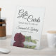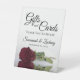 Ce joli panneau de table est parfait pour laisser les clients mariages savoir où laisser leurs cadeaux et cartes. Il présente un design simple mais élégant avec une photo d'un seul rose bordeaux, marron ou rouge vif à longue tige réfléchissant dans un bassin d'eau avec vagues et ondulations. Le panneau dit : Cadeaux et Cartes, Merci tellement ! Il y a de la place pour vos noms et la date du mariage ci-dessous.