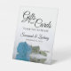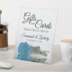 Ce joli panneau de table est parfait pour laisser les clients mariages savoir où laisser leurs cadeaux et cartes. Il présente un design simple mais élégant avec une photo d'un unique bleu ciel turquoise ou azur à longue tige rose réfléchissant dans un bassin d'eau avec vagues et ondulations. Le panneau dit : Cadeaux et Cartes, Merci tellement ! Il y a de la place pour vos noms et la date du mariage ci-dessous.