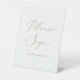 Cette délicate calligraphie dorée, s'il vous plaît signer le panneau de piédestal est parfait pour un mariage moderne. Le design minimaliste romantique présente une belle et élégante typographie de champagne jaune doré sur un arrière - plan blanc au look épuré et simple. Customisez le panneau avec votre livre d'or alternatif que vous souhaitez qu'ils signent.