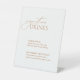 Prévoyez-vous un mariage sur le thème de la bohème et recherchez-vous le parfait signe de piédestal pour correspondre à votre esthétique? Ce panneau magnifiquement conçu dispose d'une police de calligraphie moderne qui complète parfaitement n'importe quel thème mariage. L'agencement propre et moderne assure à l'enseigne un design et une lecture facile. Nos panneaux sont parfaits pour les couples qui veulent simplifier leur processus de planification mariage sans sacrifier leur style. Personnalisez ce panneau élégant, cliquez sur "Détails". Pour déplacer le texte ou modifier la taille, la police ou la couleur, cliquez sur "Modifier à l'aide de l'outil de conception". Conçu pour coordonner avec pour la collection de Faire-part de mariage "Chloe". Voir le lien de collection sur cette page pour voir tous les éléments correspondants dans cette belle conception.