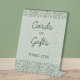 Guide guests with this elegant Bridal Shower Cards & Gifts sign, designed in a soft sage green color palette with delicate floral ornaments in the background. A handwritten-style font adds a warm, welcoming touch that suits modern, classic, and garden-inspired bridal showers. Perfect for gift tables, entry displays, and coordinated bridal shower décor.