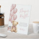 Nous Pouvons ATTENDRE VRAIMENT ! Ce panneau de table mignon et girly présente un adorable ours en peluche couleur rose bébé tenant des ballons, grand et hors du côté gauche, ajoutant une touche ludique. "Diaper Raffle" est affiché en haut à droite dans une grande calligraphie en écriture rose. Ci-dessous, le reste du texte encourage les invités à déposer leur paquet de couches pour la future mère et à entrer dans la tombola en soumettant leurs billets à partir de l'envoi d'invitation. Le design est simple et classique, avec du texte gris dans un mélange de serif et de typographie de script. Vous pouvez customiser la couleur arrière - plan pour adapter votre thème. Cette enseigne de charme ajoute une touche élégante et délicieuse à votre baby shower, parfait pour toute saison. Écran doux Calligraphie Aquarelle Ours et ballons Baby shower Déchets Raffle Tabletop Signe.
