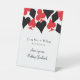 Ce guéridon acrylique invitation les invités à signer le livre d'or et présente une typographie élégante et graphique de costumes de carte en noir et rouge. Parfait pour un mariage de Las Vegas dans une petite chapelle au large de la bande, bienvenue à vos invités à votre réception avec cette enseigne facile à personnaliser. Des zones de texte flexibles vous permettent de vous ajuster au besoin et de créer votre propre signalisation personnalisée.